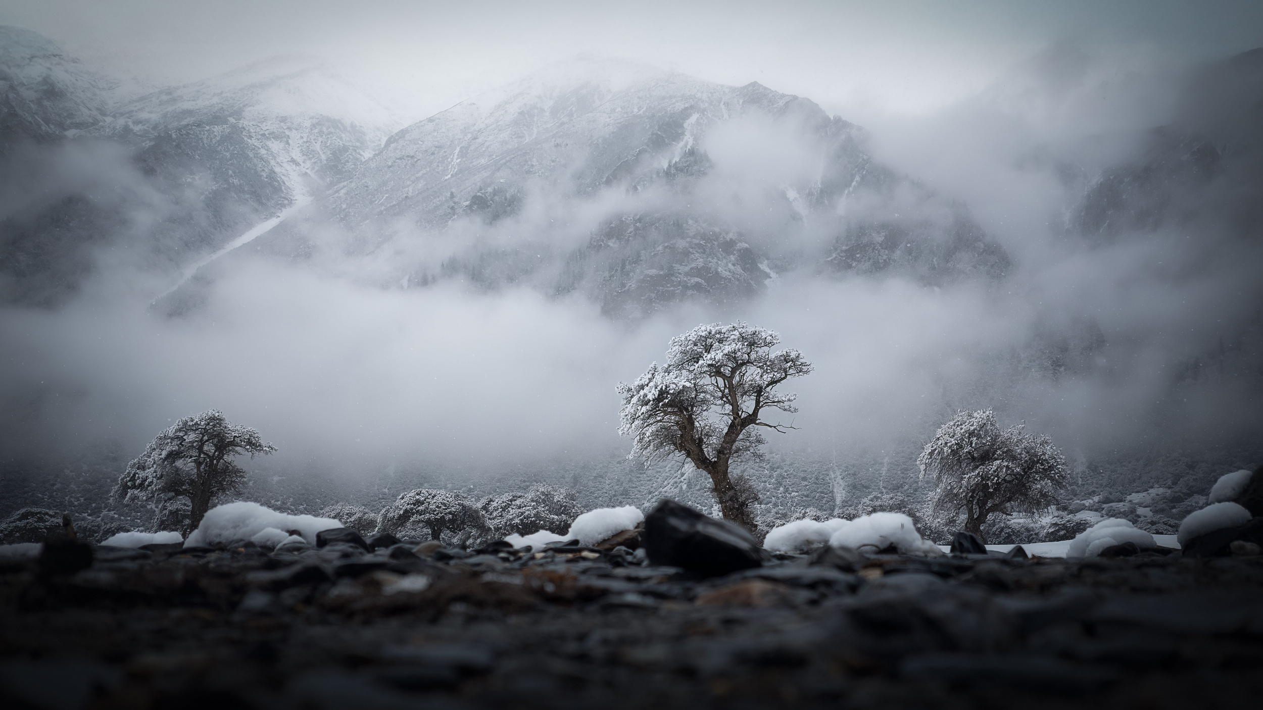 These journeys have not always been easy. On my first trip to Tibet, for example, I photographed ice formations at Puma Yumco Lake with childlike excitement, only to develop a high fever that night and be evacuated back to Lhasa. In Nianbaoyuze, I fell off a horse just fifty metres from my destination. In the forests near Bermagui Beach in Australia, I was bitten by ticks. Most recently, I trekked through the core area of Kaqiogangri, which is at an altitude of 5,300 metres. The harsh climate there irritated my throat so much that my voice became hoarse. Each experience has reminded me of my physical limits and taught me humility, patience and respect for nature.